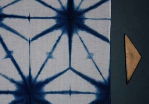 これは日本人にとってもっとも親しみ深い日本を代表する色であるが、それらの色を染める防染技法として近世の板締めがある。