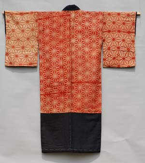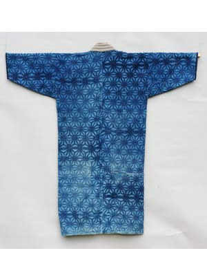 藍板締め麻の葉文様半被 藍板締め木綿布