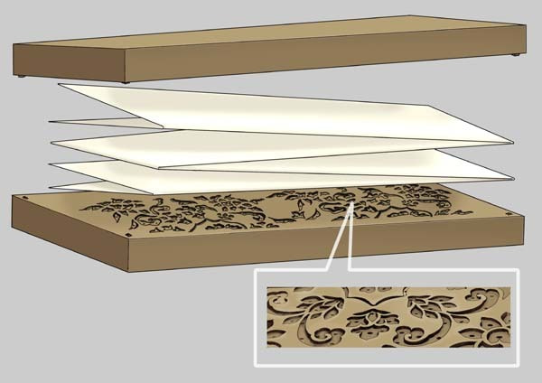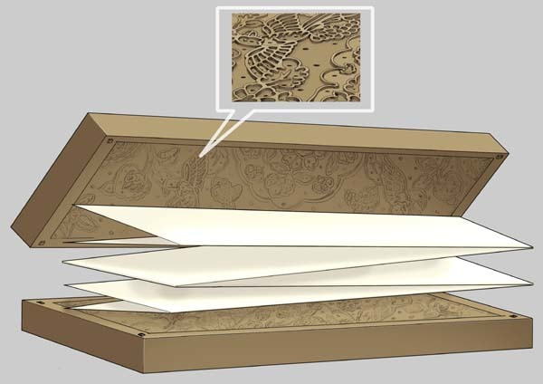 陽刻版木(上下板のみ片面彫り) | 陽刻版木(片面、両面彫り) |