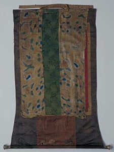 1パターンに適したモチィーフ(植物文、幾何文、動物文、器物文、風物、文字、絣文)の組み合わせで吉祥を表すなど、華やかな文様が多数。 2テーマ性の有る文様3明治以降の新しい文様(旗、軍旗) |
