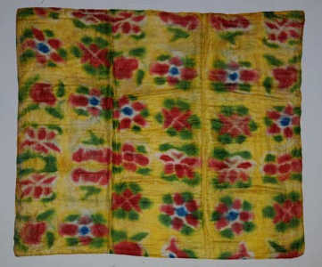 seems to have gradually ceased to be used after about the Heian period (A.D.794-1185),or earlier.After the middle of the 18th century the Japanese again began to use clamp resist dyeing technique in two ways.One was dyeing silk with safflower (Beni-Itajime) and the other was dyeing cotton with indigo(Ai-Itajime).