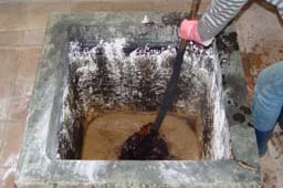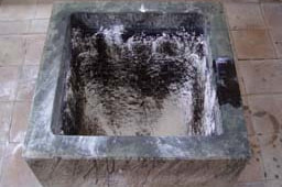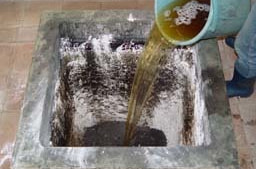 木灰汁を加え、石灰(止石)を入れ、さらに微生物の持続的な栄養源としてかゆ状に炊いたふすまを静かに入れ、作業を終えます。