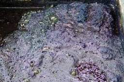 2,3日 早ければ次の日には液の表面に紫色の膜があらわれ、泡(藍の華)があらわれます。アンモニア臭が強く目を刺すような刺激があります。